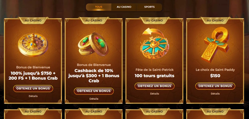 - Bonus de bienvenue : En rejoignant le Casino AmunRa, les nouveaux utilisateurs peuvent bénéficier de bonus de bienvenue adaptés tant à la section casino qu'à celle des paris sportifs. Ces bonus de bienvenue incluent généralement des augmentations en pourcentage sur les dépôts initiaux et peuvent incorporer des avantages supplémentaires comme des tours gratuits ou des remboursements.