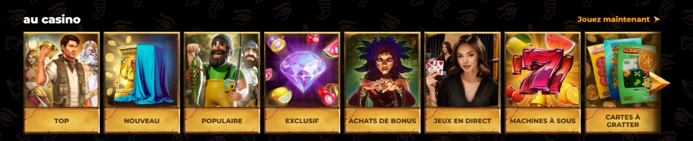 - Civilisations anciennes : Pour les passionnés des thèmes historiques et archéologiques, AmunRa Casino présente des machines à sous qui approfondissent les civilisations anciennes. Ces jeux incluent généralement des symboles, scénarios et récits inspirés par des cultures comme l'Égypte, Rome et la Grèce.